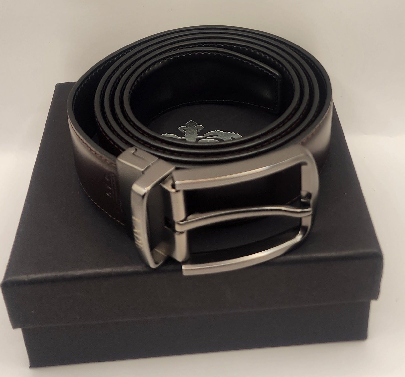 LADE Reversible Leather Belt-Men-Brown /Black-Silver Buckle